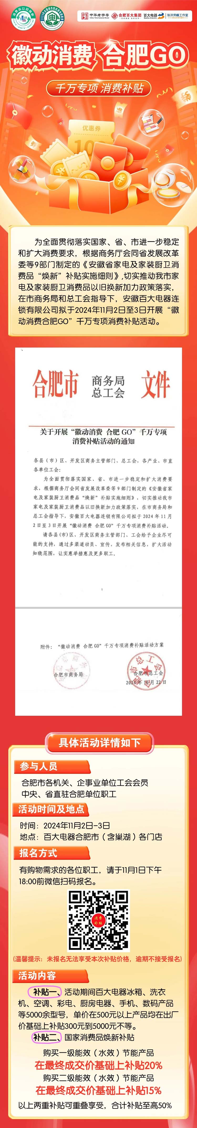 關(guān)于開展“徽動(dòng)消費(fèi)·合肥GO”千萬(wàn)專項(xiàng)消費(fèi)補(bǔ)貼活動(dòng)的通知