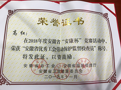 2018年度安徽省優(yōu)秀工會勞動保護(hù)監(jiān)督檢查員